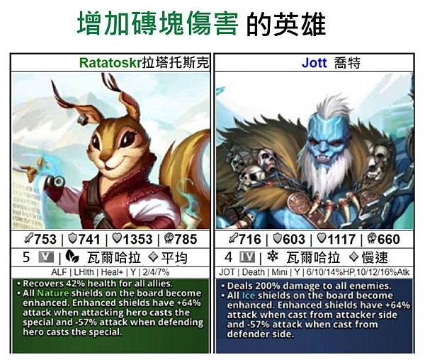 π stats jott rarity element class ⭐⭐⭐⭐ epic ice/blue barbarian mana speed attack defense health s slow ⚔ 716 π‘ 603 1117 origin realm season 3 jotunheim π« special skill: • all ice shields on the board become enhanced. Enhanced shields have +64% attack when cast from a. All ice shields on the board become enhanced. • deals 200% damage to all enemies.